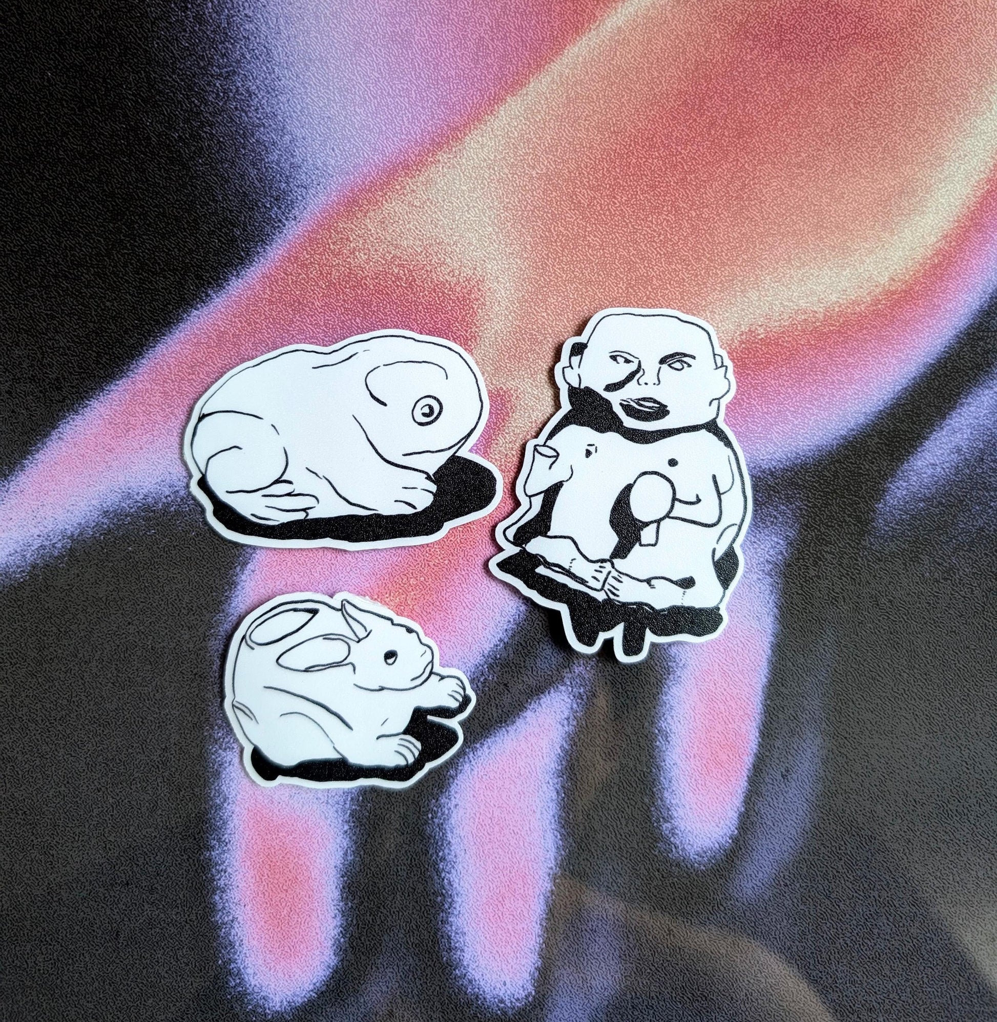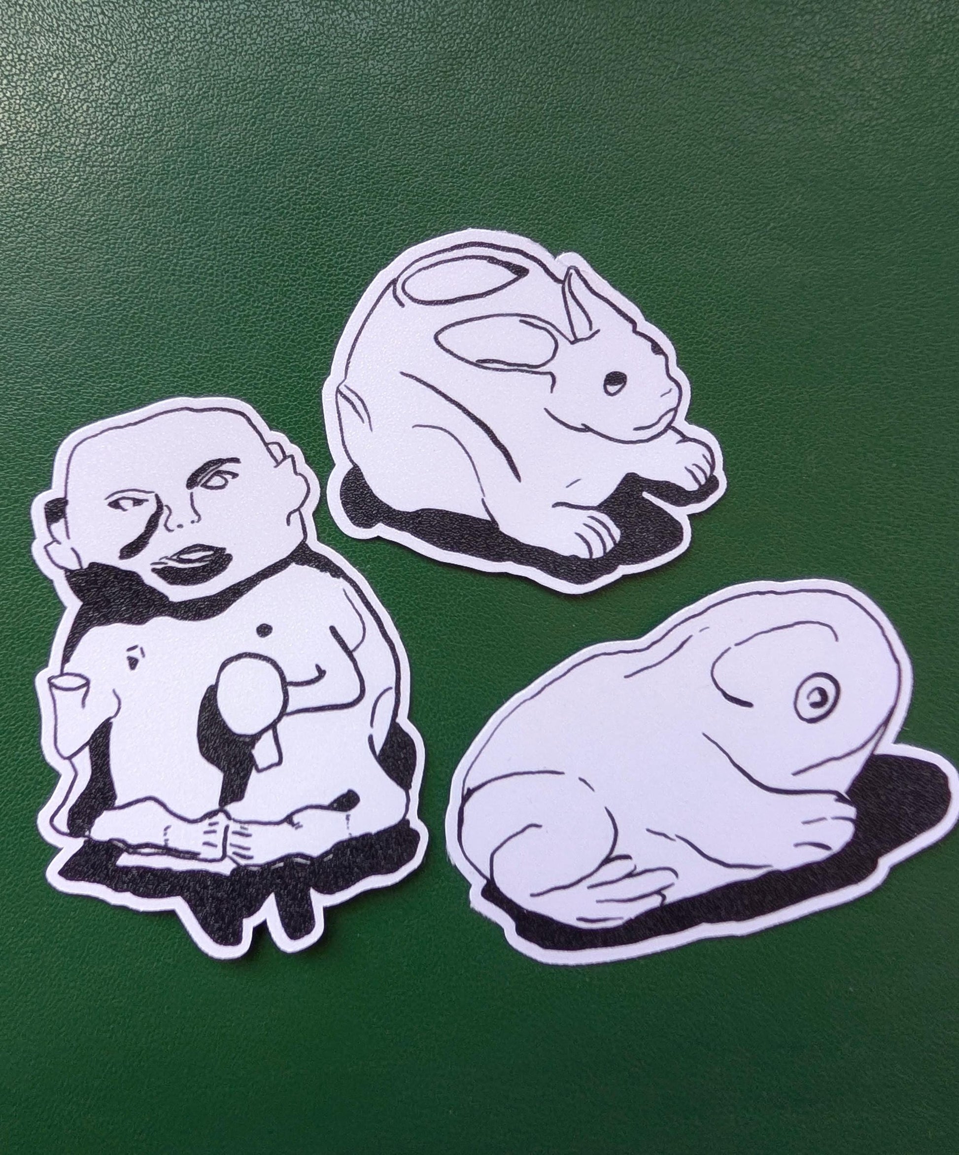 Set of three stickers depicting trinkets.